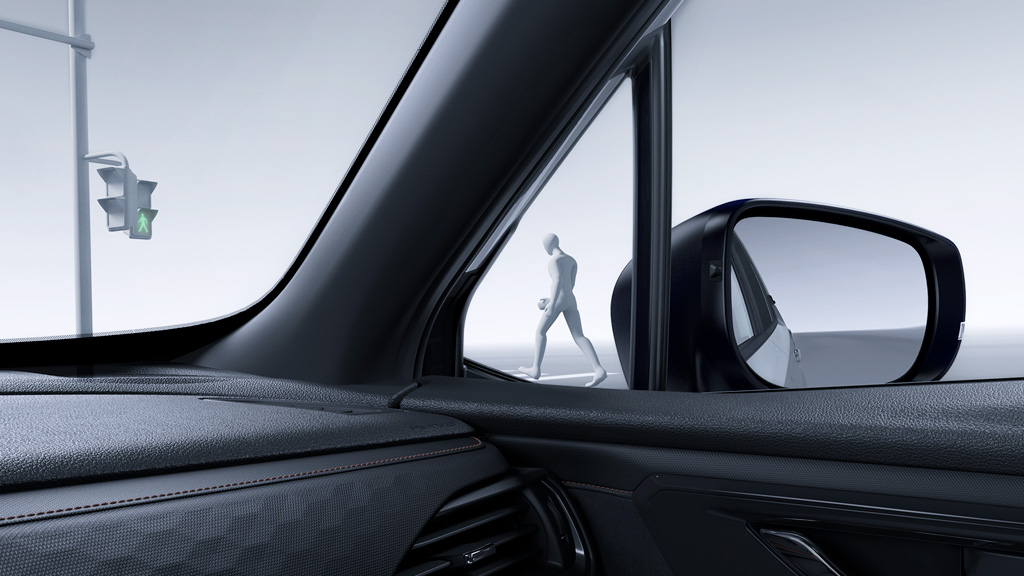 Система на основе радаров определяет наличие транспортных средств в «слепой» зоне и предупреждает водителя при помощи индикаторов в боковом зеркале. Если при этом водитель включает указатель поворота, система дополнительно активирует звуковой сигнал.
